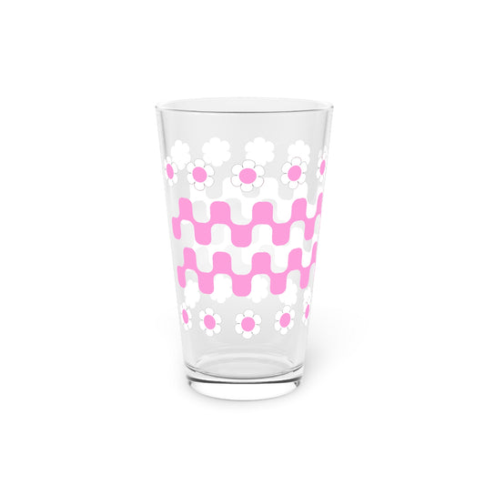 Retro Flower Child Squiggly Pint Glass