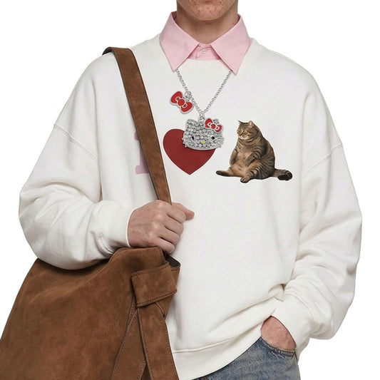 I Love Cat Oversized Sweatshirt – Cute Graphic Cat Crewneck Pullover