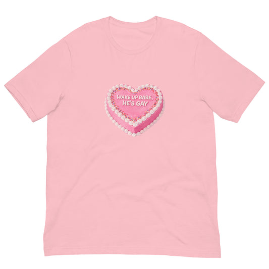 Wake Up Babe He’s Gay Tee – Funny Cake Graphic T-Shirt